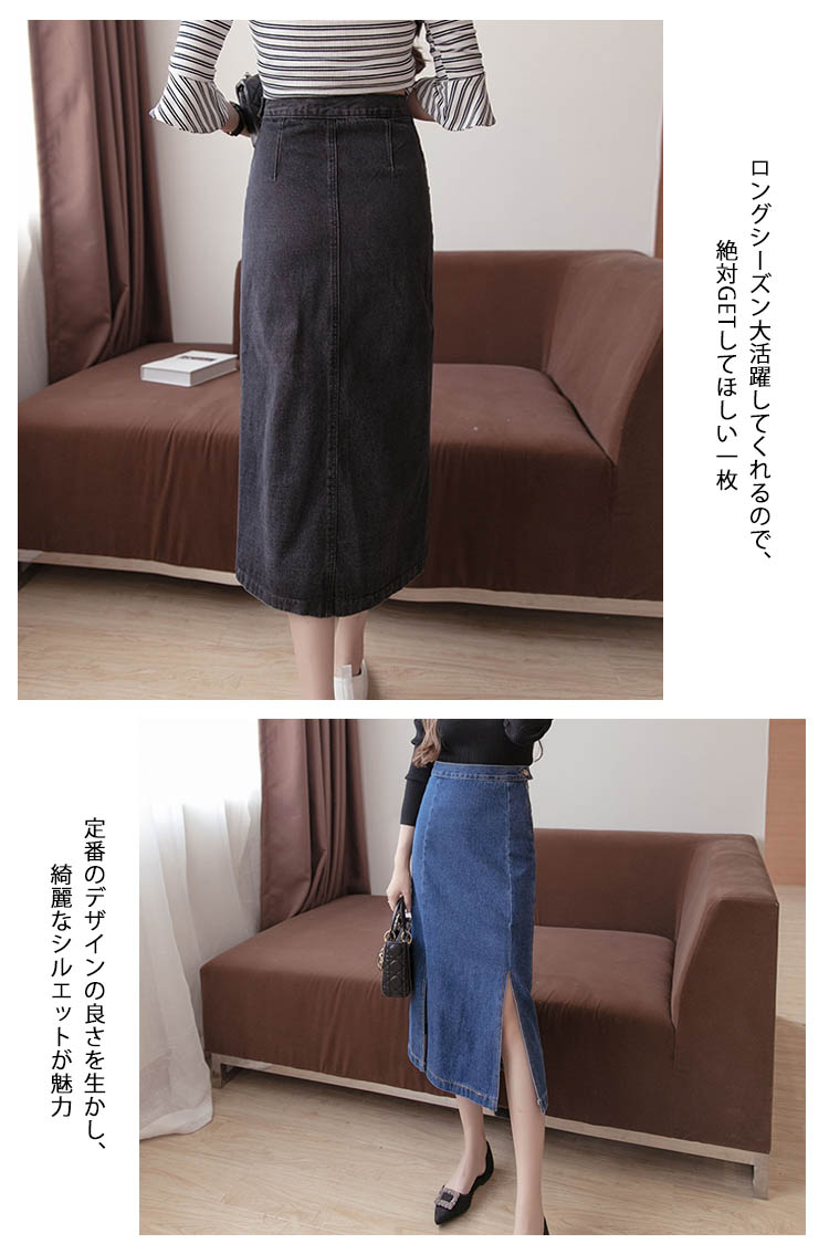 | 大人モードにトレンドコーデを楽しめるハイウエストデニムスカート ロングシーズン大活躍してくれるので、絶対GETしてほしい一枚定番のデザインの良さを生かし、綺麗なシルエットが魅力きっちりめで穿いても、腰に落としてゆるく穿いても可愛い雰囲気を出してくれるん季節を問わず着まわしたいアイテムだからしっかりと丈夫な生地感が嬉しい | |