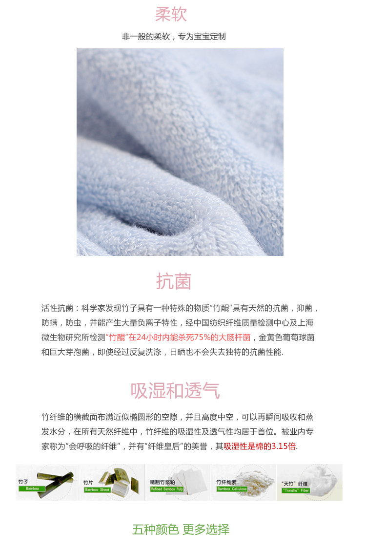 Bamboo fiber fabric is very soft very absorbent, not in the water before feeling is not thick, once in the water and thick, soft, strong ability to absorb. Because of high density, resulting in bamboo fiber fabric is afraid the snag, so my friends when in use, we should pay attention to avoid the hook to the sharp objects, such as tag,nail. Once the hook out, please do not pull, as long as the use of scissors and cut offthe coil tick toRose red,