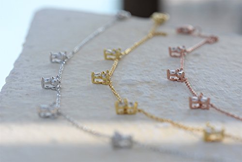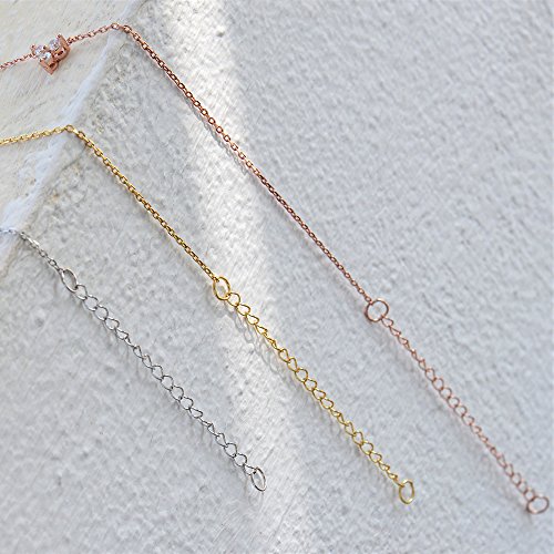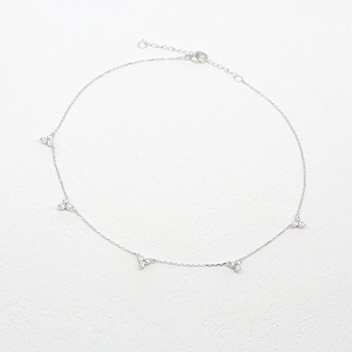 Measurement - 14" long with a 2.5" extender to fit most necklines , adjustable; each cz stone 3mm round cut. Total weight 4.5g.