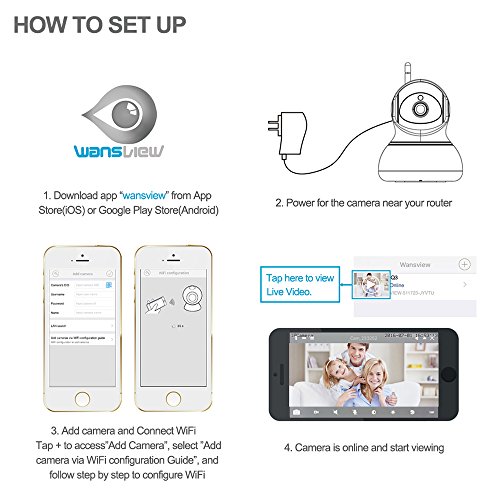 WANSVIEW WIRELESS SECURITY CAMERA: Helps you keep eyes on your home/baby/nanny/pet/elder/workplace at anytime and anywhere.1280*720P resolution at 25fps, the living stream can be accessed via iOS/Android mobile devices APP, Windows PC and Apple Mac Software(7/24 recording function on PC) and http web browsers (IE, Firefox, Safari, Chrome supported).