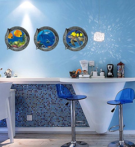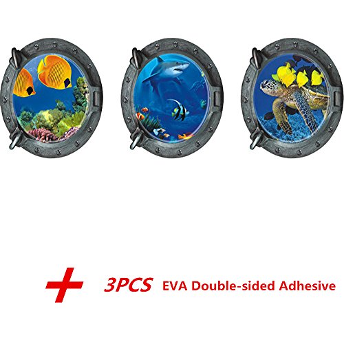 Pack of 3Pcs Ocean Shark 30cm*30cm Wall Sticker 3D Porthole Window Kids Room Home Decor Art