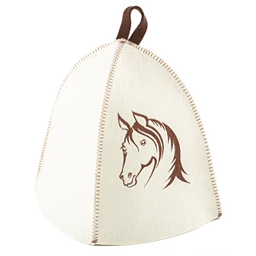 Sauna Wool Hat White Embroidered Horse