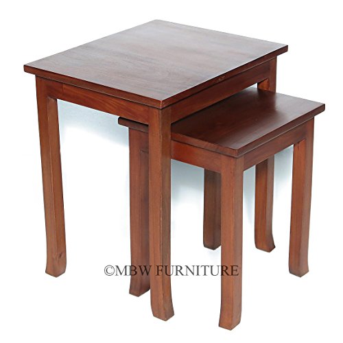 -. Title : Set of 2 Distressed Solid Mahogany Nesting Tables