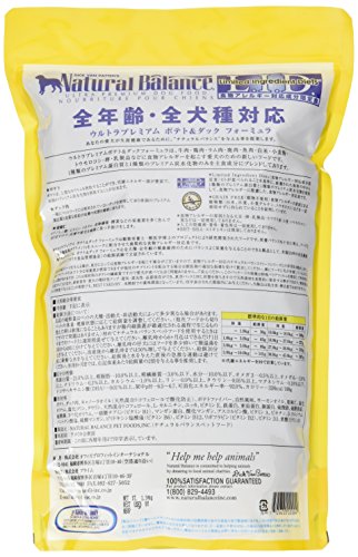 原材料:ポテト・ダック肉・キャノーラオイル(天然混合トコフェロールで酸化防止)・ポテトファイバー・自然風味・サーモンオイル・亜麻仁・塩化カリウム・塩化コリン・タウリン・天然混合トコフェロール・L-カルニチン・ユッカ・ビタミンE・鉄蛋白・亜鉛蛋白・銅蛋白・硫酸鉄・硫酸亜鉛・硫酸銅・ヨウ化カリウム・一硝酸チアミン(ビタミンB1)・マンガン蛋白・酸化マンガン・アスコルビン酸・ビタミンA・ビオチン・D-カルシウムパントテン酸塩・硫酸マンガン・ピリドキシン塩酸塩(ビタミンB6)・ビタミンB12・リボフラビン(ビタミンB2)・ビタミンD3・葉酸(ビタミンB)