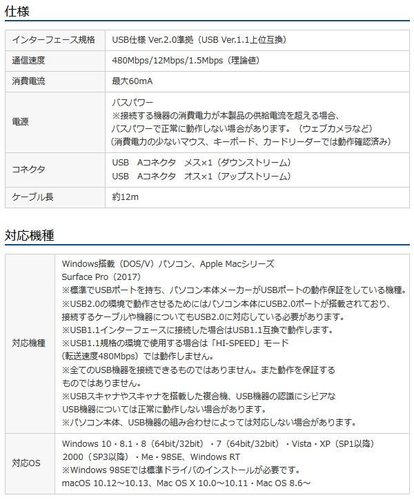 | USBケーブルの規格(機器間最長ケーブル長5m)を超えて、12m延長できるハイパワーリピーターケーブルです。減衰したUSB信号を復元する信号増幅補正回路を内蔵することで最大12mの延長を実現しています。各OSに含まれているドライバを使用しますので、特別なソフトウェアのインストールの必要がありません。 |