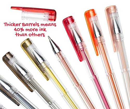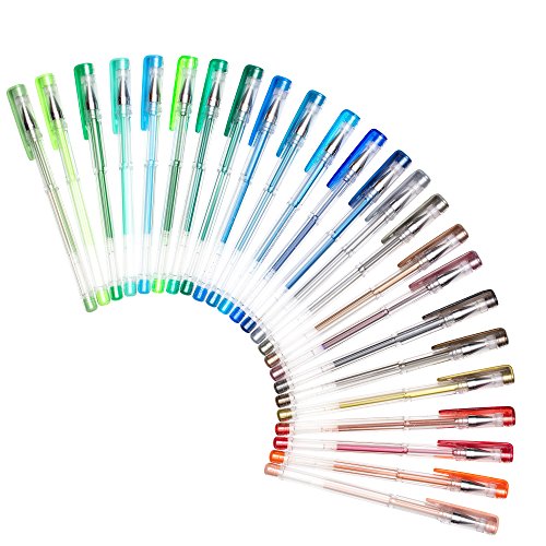 -. Feature : STUNNING RAINBOW SET - 24 Vibrant Colors: Blue, Green, Brown, Red, Aqua, Gold, Silver, Black, White, Yellow, Orange, Purple, Magenta, Cyan, and Much More. In Stunning Glitter, Neon, and Pastel Styles / 24 REFILLS INCLUDED - Refills included to make your pens last twice as long for twice the amount of gliding! Also saves on plastic for the environmentally conscious / PREMIUM CRAFTING QUALITY - Best gel pens: Now with fine tip ballpoint 1 mm roll. Doesn't smear, fade or skip - just glides on for perfect free-flowing sketching, doodling, coloring and writing. Are also safe for children (non-toxic and acid-free) / WHAT CAN I DO WITH THEM? Great question... Gel Gliders are ideal for journals, scrapbooking, adult coloring books, greeting cards, diary, journal, decorating, party invites, writing, DIY, zentangles, nail art, general crafting, tattoos and more. Perfect gift idea for budding artists, students and teachers / OUR NO-RISK "HAPPY-CRAFTER GUARANTEE" - We are so sure you will love your Gel Gliders that we will happily refund your purchase if you are not 100% satisfied