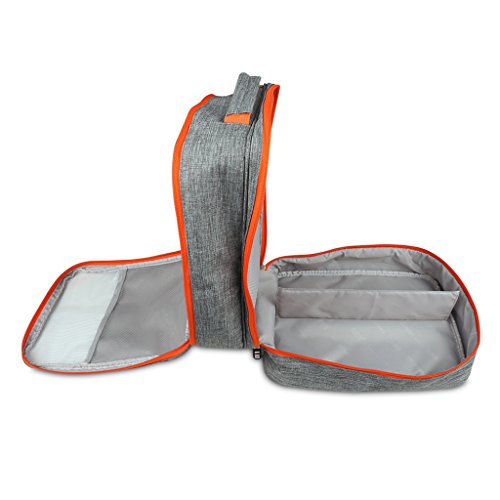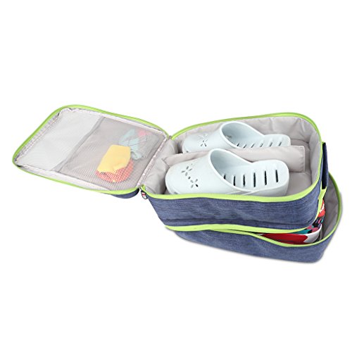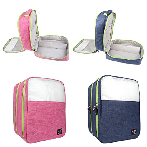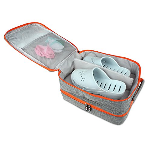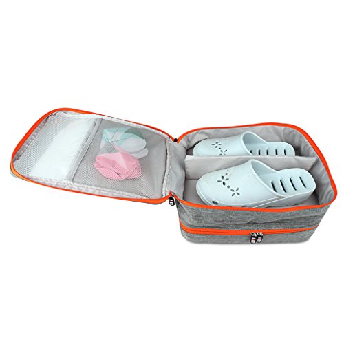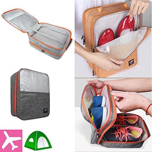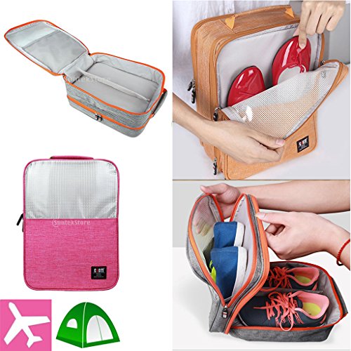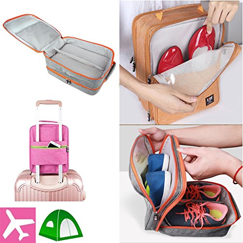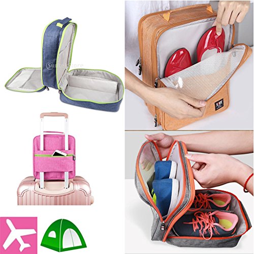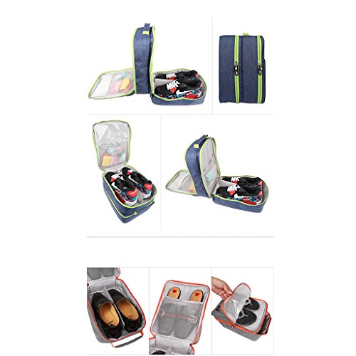 Description: - Portable shoe travel bag, saving space of your packing luggage; - Compartment design, can storage 3 pair shoes(adult size) and small stuff at one time, big capacity; - Waterproof and dustproof, keep your shoes and sneakers clean all the time; - Perfect shoe organizer for travel, sport, gym, camping, hiking, long tour,biking; - Lightweight and durable, with handle to carry easily, can put on luggage;