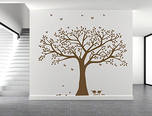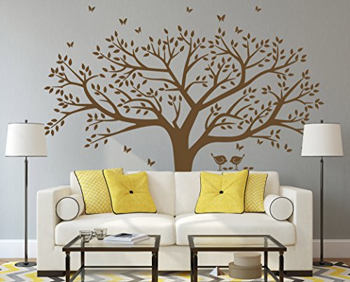 ANBER Family Tree Wall Decal Butterflies and Birds Wall Decal Vinyl Wall Art Photo Frame Tree Stickers Living Room Home Decor Wall Sticker, Brown