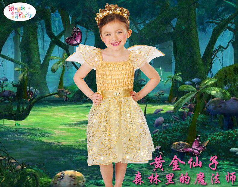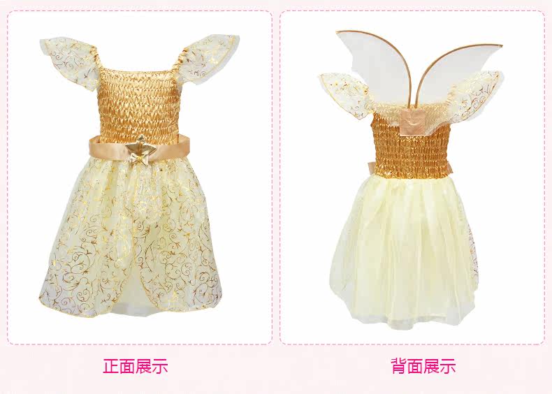 万圣节Cosplay儿童演出服装女童连衣裙公主裙黄色蜜蜂蝴蝶仙子裙