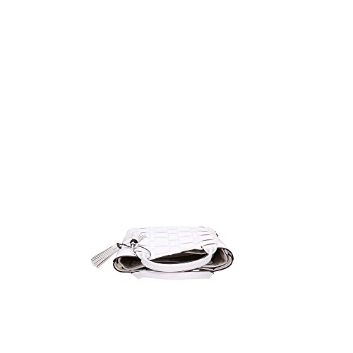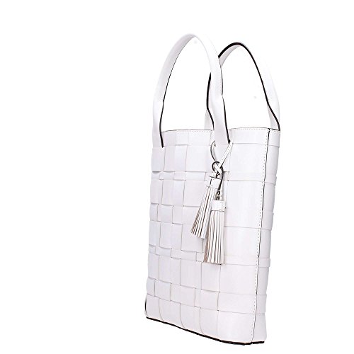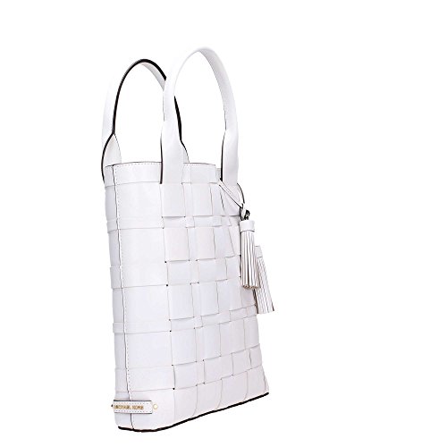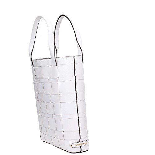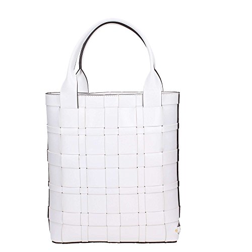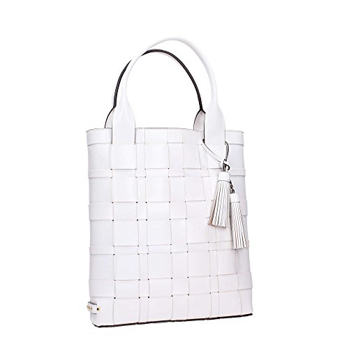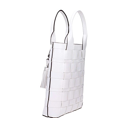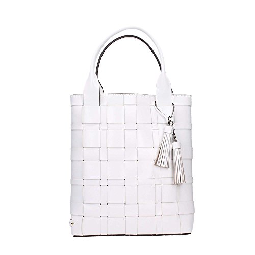 -. Title : Vivian Large Woven Leather North South Tote in Optic White