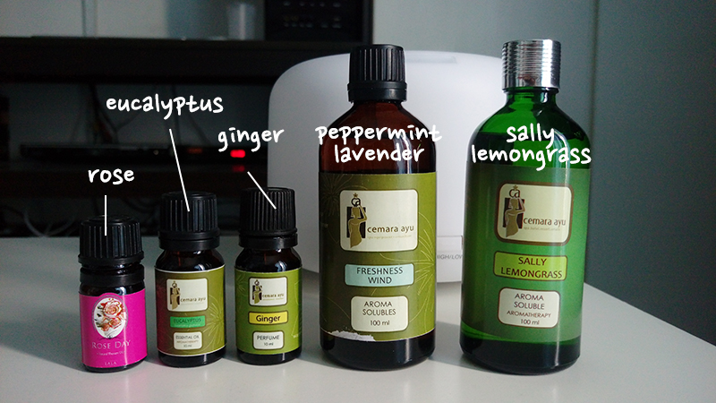 There are many types of essential oils out there but the aroma diffuser needs pure essential oils or water soluble ones so it doesn't clog / damage your aroma diffuser machine. I was lucky to get my hands on Buy 1 Free 1 essential oils yesterday from 1Utama (New Wing) Beauty roadshow (Tirta Spa stall). It only cost me RM118 for 2 large 100ml bottle and 2 10ml bottle essential oils. Talk about a steal. Before that I used the oil from the Rose Day Inner Gel Cleanser + Rose Oil RM60 at ?(these are for woman "intimate" wash & panty aromatherapy)? which works fine too haha.