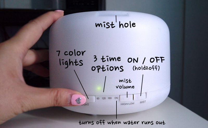 Because I believe that I need that extra love at night would help with my beauty sleep. The air won't be so dry (dehumidifier)? your skin won't get as dehydrated and it's easier to breath (air conditioned room). The old wives tale to put a bowl of water in the room but I wanted something cooler. I'm also a firm believer in the healing benefits of aromatherapy. Drop 2 - 3 drops of essential oils into the diffuser and walah! A whole new mood is created.