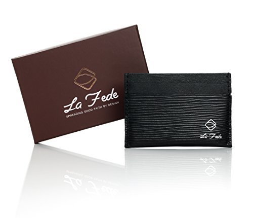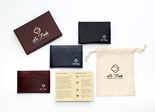 Our simple and modern design can hold cards and cash tightly and securely. We have eliminated the use of buttons or metal tags to keep this wallet as thin as possible. Our card holder perfectly fits into pockets without any discomfort . La Fede strives for the best to keep our customer satisfied with our products.