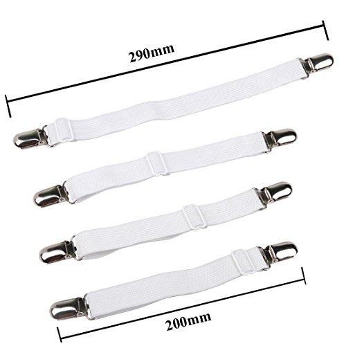 -. Title : Andux Land Sheet Suspenders Adjustable Fitted Sheet Straps Grippers Mattress Cover Corner Holder Elastic Straps Fasteners Clips Clasps Ideal for Ironing Board CDJ-05 White