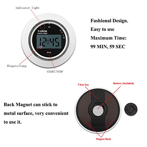 - Unique design and energy-saving: just spin the ringstellung you can set the time, when the time's up, alarm will continue ring a minute with a LED flash. If no any operation over 1 minute, the time will turn off automatically to save battery power.