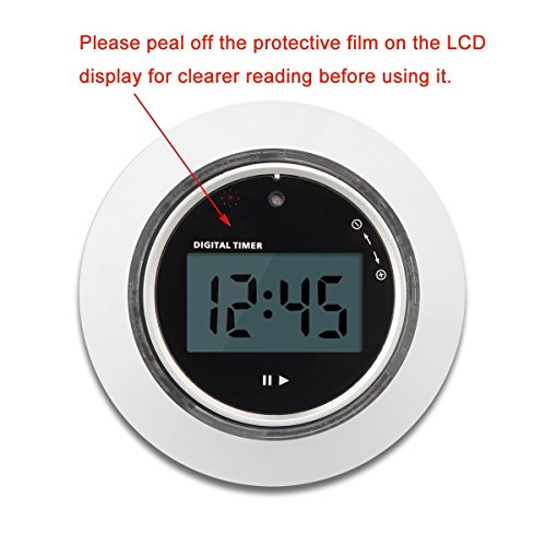 - Large LCD Screen with Clear Digits. just a glance from across the room and you can easily read the timer display. Product size:83*83*37.5MM, Powered by CR2032 (included)