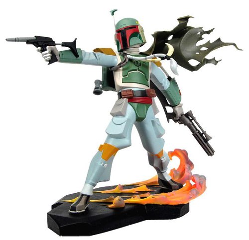 「スター・ウォーズ」に登場するバウンティハンター「ボバ・フェット」を、アニメシリーズの「クローン大戦」タッチにモデル化。抜群の商品稼ぎとして活躍する彼の姿を、躍動感あふれる姿で立体化している。