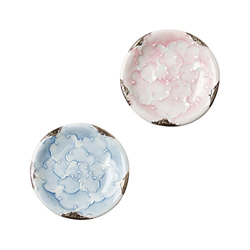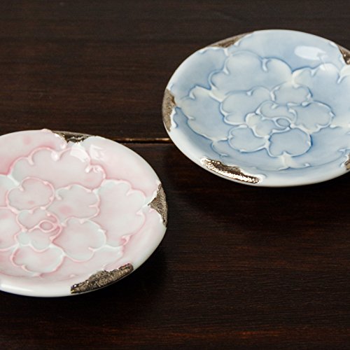 원본상품명: 有田? プラチナ牡丹(ブル?/ピンク) 丸豆皿2個セット 6.5cm 文山窯 buz0602