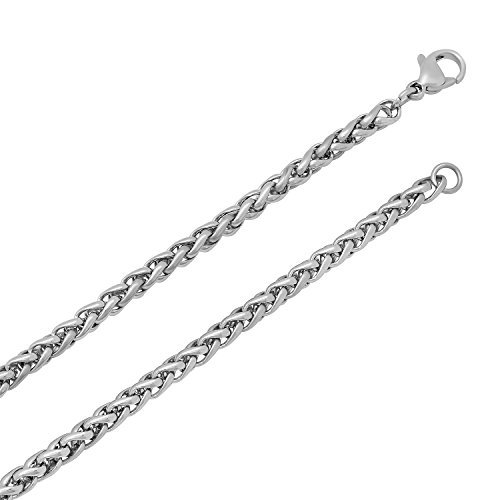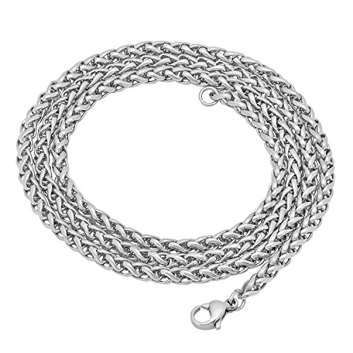 -. Feature : BONUS POLISHING CLOTH & VELVET POUCH - Includes a complimentary black velvet jewelry pouch and a dual-layered premium quality microfiber jewelry polishing cloth along with an instruction guide on how to clean, buff, protect & maintain a brilliant shine on your jewelry / POLISHED & DURABLE - This high polished stainless steel wheat necklace is 3mm wide (3mm thick) that fastens with a sturdy lobster clasp / CLASSIC & TIMELESS - its flexible rounded symmetrical display of a texturally woven plaited design complement any look with a lustrous shine perfect to be worn solo, stacked or adorned with a charm / QUALITY CRAFTSMANSHIP - constructed of anti-tarnishing, scratch-resistant stainless steel, this chain features a non-plated finish that is luminously polished to a radiant shine / ORDER WITH CONFIDENCE - Backed by a Lifetime Warranty against all manufacturer defects in material and craftsmanship