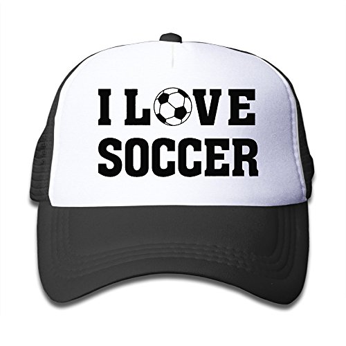 Kids I Love Soccer Flat Billed Sporting Caps Black