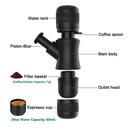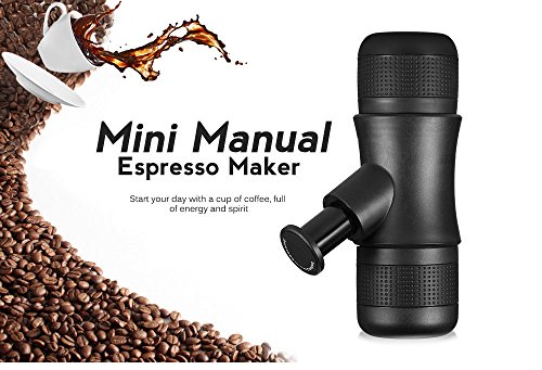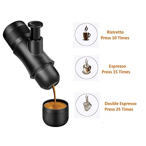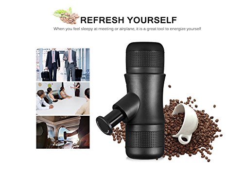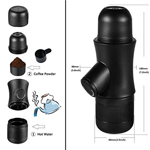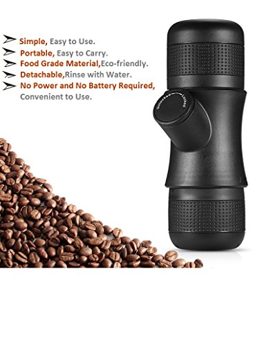 - ● Portable Size and Simple: 7.2 x 2.4 x 2.8 inch,Easy to carry up,and you can make espresso anywhere,Perfect to bring along for hiking,camping,traveling or at the office.