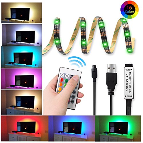 16 Colors USB LED Strip Light Flexible TV Bias Lighting Accessories Backlight RGB Lights 5V with Remote Control Multi Color Light 3.3ft