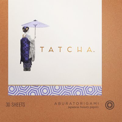 Studio : Tatcha Publisher : Tatcha Binding : Misc. Product Description A 300 year old Japanese beauty secret for a petal fresh complexion revealed. Removes excess oil and sweat without disturbing makeup or stealing moisture from the skin. A powder and primer alternative that improves the wear of makeup. For all skin types: oily, normal, dry sensitive. Fragrance-free. Powder-free. Oil-free. All-natural, biodegradable. No animal testing. Handmade in Japan. 30 Sheets Size: 3.74" X 3.74" Made with the finest grade of abaca leaf, prized for strength, absorbency and softness. No pulp to dry and irritate delicate skin and remove makeup. Real gold flake in each leaflet for authenticity. Gold flake will not transfer onto skin. 0