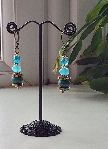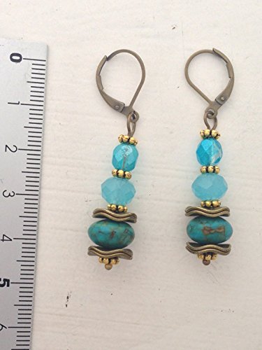-. Title : Drop earrings - turquoise, antique gold and bronze