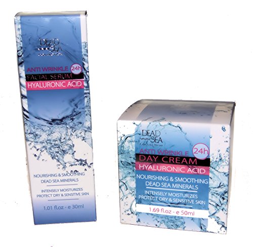 Anti Wrinkle Hyaluronic Acid Facial Serum and a Day Cream - both with Dead Sea Minerals & Vitamins A and E