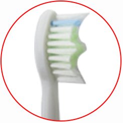✔ The DUAL contouring of the bristles (transverse direction in waved shape + longitudinal direction in a wedged shape) increases the contact area when brushing for better cleaning.