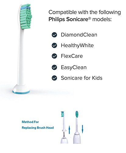 ✔ BETTER PLAQUE REMOVAL - Our brush heads are better at removing plaque, decreasing the chance of gingivitis when compared to a manual toothbrush. COMPATIBLE HANDLES - Our easy "Push On" sonicare replacement heads provide easy installation and removal. Compatible with the following Sonicare Handles: Diamond Clean, Flex Care, FlexCare +, Healthy White, and Easy Clean. (Complete list of compatible models in description below)