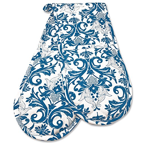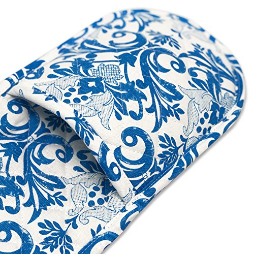 Smart Home, Traditional, Pretty Blue, 1 Piece, Long Double Oven Mitts Gloves, Heat Resistant, 100% Cotton, Extra Thick, Quilted