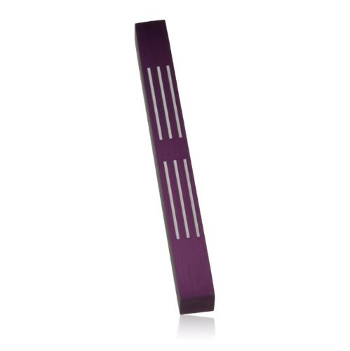 - Created by Adi Sidler, this contemporary purple mezuzah case is made of brushed aluminum with lines representing “shin” etched on the front.