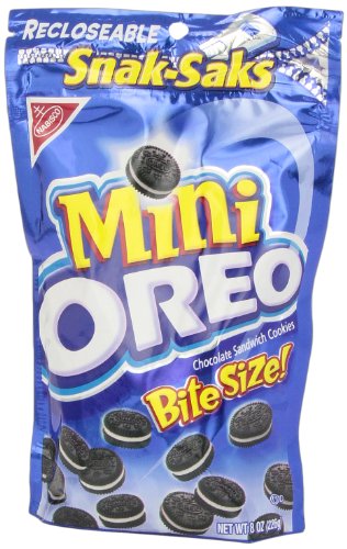 -. Binding : Grocery -. Brand : Oreo -. Color : Multi Color Crystals -. EAN : 0044000015923 -. Feature : 8-ounce bags of mini chocolate sandwich cookies / Made with chocolate and cocoa for rich flavor; Kosher certified / Low in saturated fats; 8% RDA of iron / Same classic cr?me-filled chocolate cookie you've loved since you were little; resealable bag helps ensure freshness / An ultra-mini variation on one of America's most famous cookies / 8-ounce bags of mini chocolate sandwich cookies / Made with chocolate and cocoa for rich flavor; Kosher certified / Low in saturated fats; 8% RDA of iron / Same classic cr?me-filled chocolate cookie you've loved since you were little; resealable bag helps ensure freshness / An ultra-mini variation on one of America's most famous cookies -. Label : Nabisco DSD -. Manufacturer : Nabisco DSD -. Model : cfuda -. MPN : 44000015923 -. NumberOfItems : 1 -. PackageQuantity : 1 -. PartNumber : 44000015923 -. ProductGroup : Grocery -. ProductTypeName : GROCERY -. Publisher : Nabisco DSD -. Size : Single Bag -. Studio : Nabisco DSD -. Title : Oreo, Mini Chocolate Sandwiches Snak Saks, 8 oz -. UPC : 044000015923