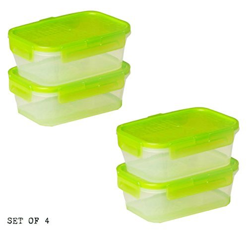 Snapware 4-Pack Airtight 2-Cup Rectangle Containers, Plastic With Green Lid