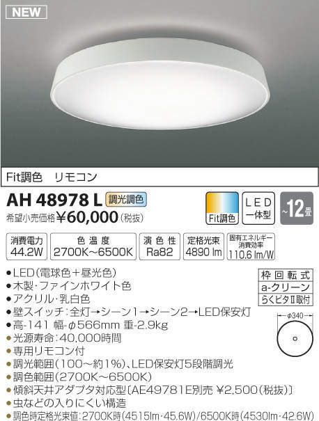 ●調色時定格光束値:2700K時(4515lm・45.6W)/6500K時(4530lm・42.6W)