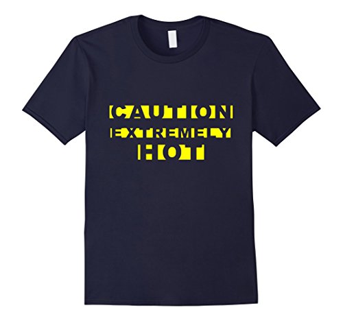 Mens CAUTION EXTREMELY HOT Funny Crime Scene Tape Yellow Text Tee Medium Navy