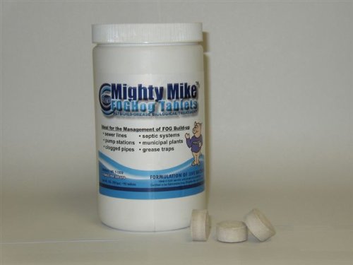 Studio : Mighty Mike® Publisher : Mighty Mike® Binding : Kitchen Product Description Mighty Mike® FOGHog® (Fats, Oils Grease) Tablets utilizes a special formulation of “class 1” bacterium that have been specifically designed to function in both aerobic and anaerobic conditions. FOGHog® consumes and decreases the amount of FOG buildup in sewer lines, pump stations, treatment plants and septic systems. 0