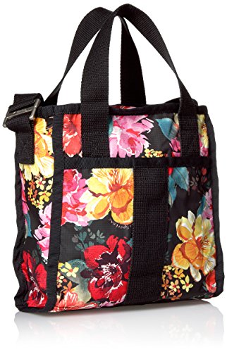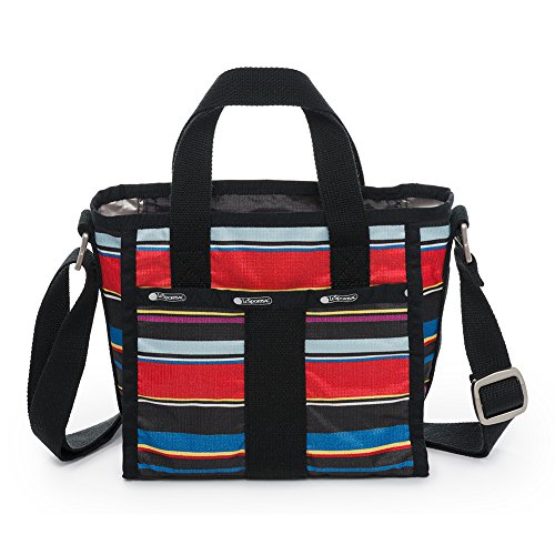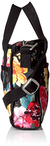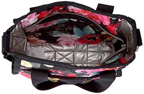 Zip top closure, exterior slide pockets with snap closures on front & back