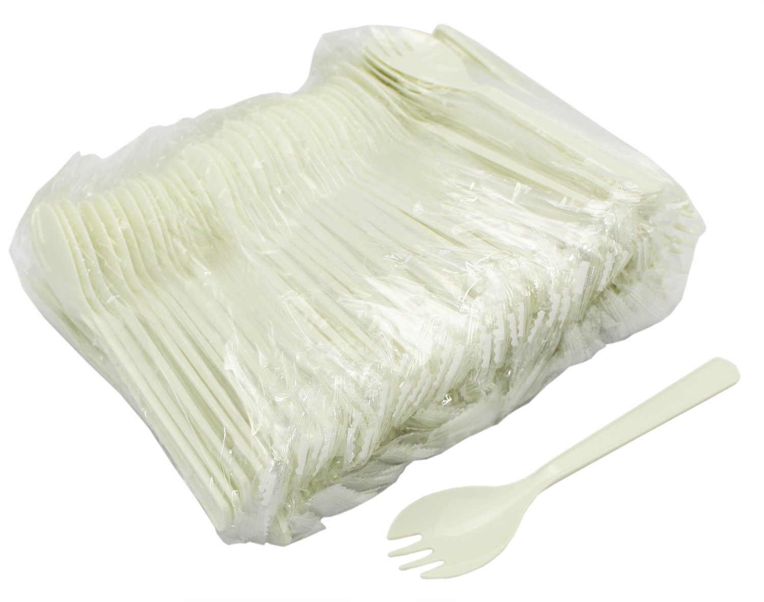 100 pieces fork spoon plastic disposable individually wrapped containing 16cm