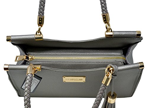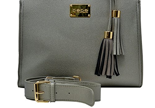 This authentic designer bebe bag features a chic and modern design that can easily go from day to night. Braided handles, goldtone hardware, fabric lining, and multi-toned tassels elevate the design of the bag while not forfeiting functionality and quality. The bag features one interior slip pocket and one zip wall pocket, as well as a removable and adjustable strap to convert the bag into a crossbody style tote.Feature