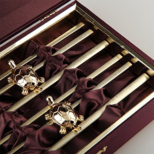 -. Title : High Quality Korean Stainless Steel 18/10 Chopsticks & Spoon Couple Gift Gold Plated Rose with Turtle Shape Chopsticks Support Couple Gift