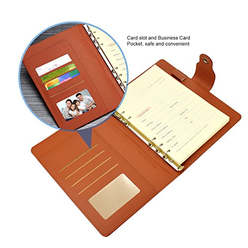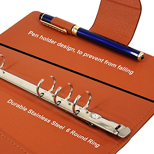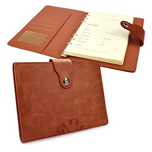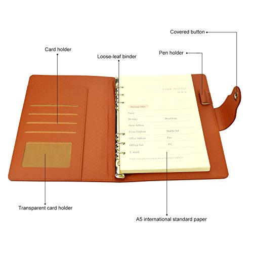 √ High-end PU Leather & Eye-protective Beige Calendered Paper - This notebook cover use premium leather, Superb craftsmanship ,soft touch and durable, looks high end. Made of Calendered paper, delicate and smooth touch. The inside use 6 hole loose-leaf refillable paper, beige mild color protect eyesight, writing impermeable.