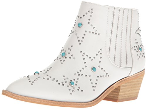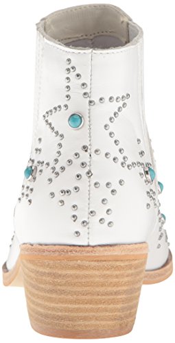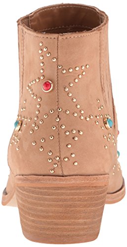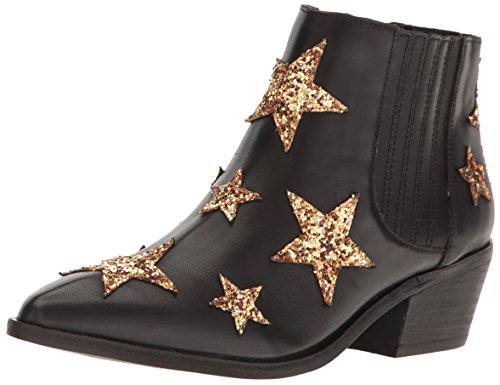 Product DescriptionPointed toe chelsea western bootie with allover star detail and low stacked heel0