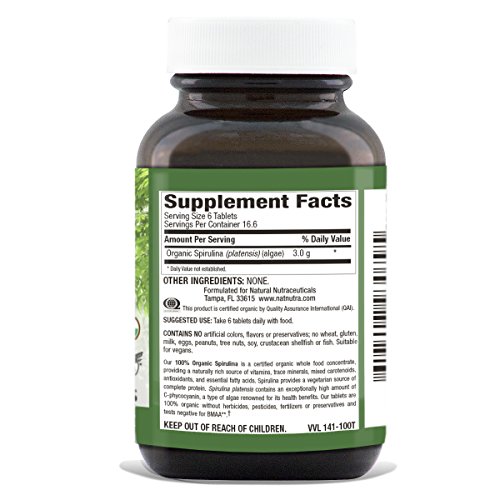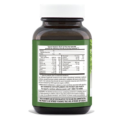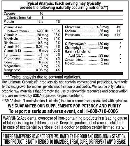 A VEGAN & VEGETARIAN SOURCE OF ESSENTIAL FATTY ACIDS — Our 100% organic spirulina is a whole food concentrate in tablet form. This green superfood is rich in protein, Vitamin A, and B12.