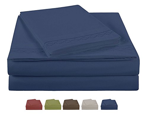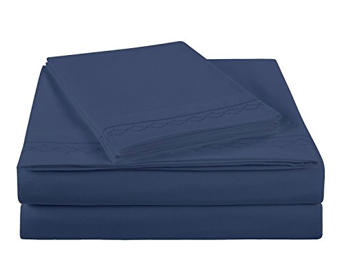 Lily & Skye S1150T Microfiber Embroidered hem sheet set, Queen, Blue Indigo