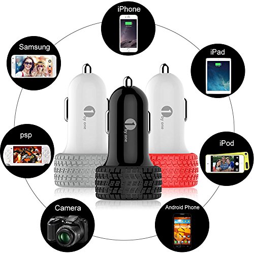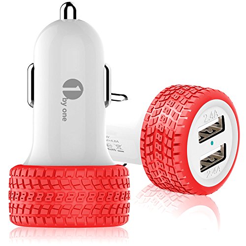 -. Title : 1byone 4.8A / 24W 2-Port USB Car Charger, Safety Protection for Apple and Android Devices, Red & White
