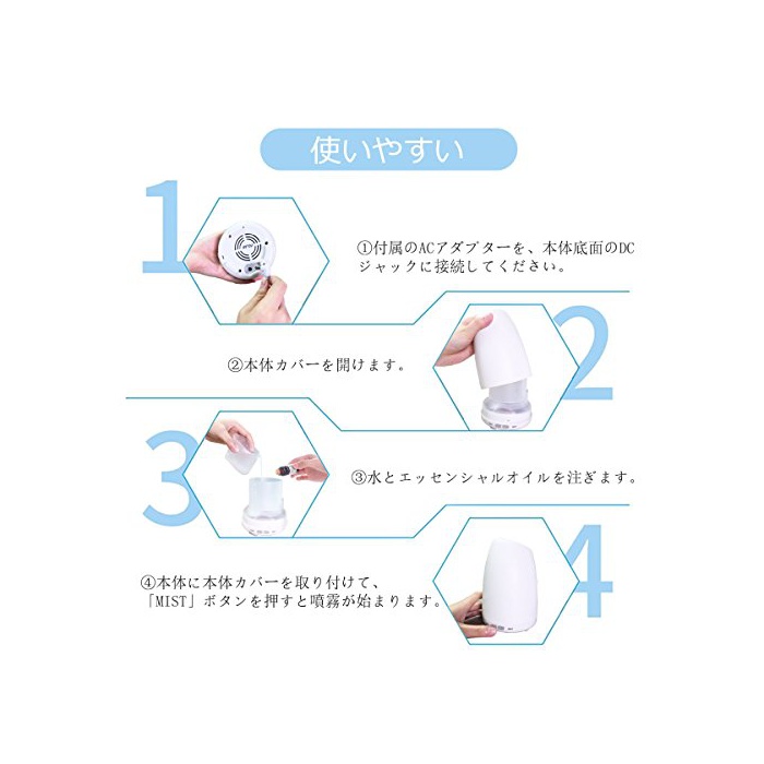 【안심 설계】:초음파 진동으로 화상 심장배도 없는 안전한 초음파 가습기.하늘 지펴 방지 기능 탑재하고, 아이나 노인이 있는 가정으로도 적합입니다.침바탕으로 두어 기분이 상쾌한 조명과 향기에,좋은 수면이 잡아라 있습니다. 하늘 지펴 방지 기능 첨부 와 몇에 이대로 자도 괜찮습니다.