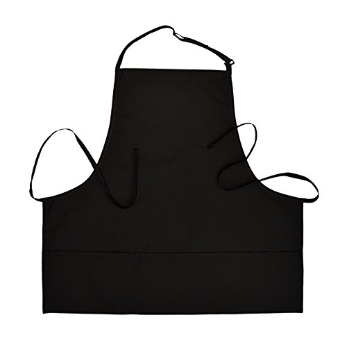 3-Pocket Bib Apron with Adjustable Neck and Extra Long Ties (2, Black)