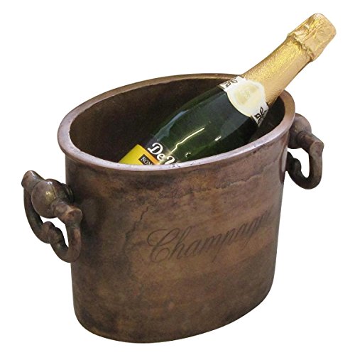 -. Feature : Distressed copper finish 2 traditional ball and ring handles / Suitable for 1 bottle with ice / Champagne lettering engraved on both sides / Centre piece for parties or restaurants / Made from heavy gauge 10mm metal